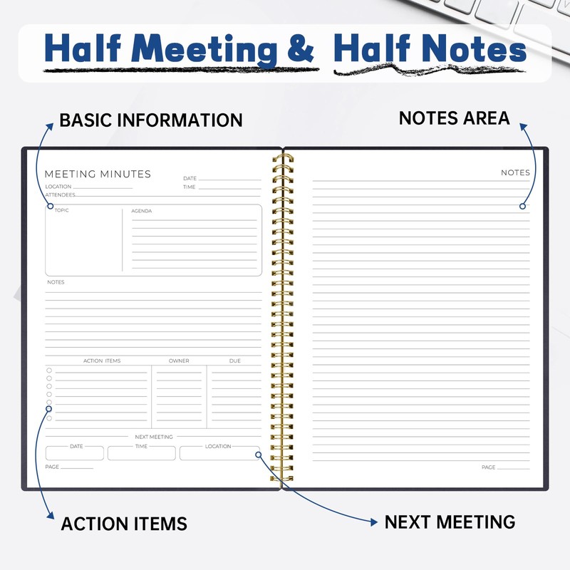 - Your Perfect Meeting Companion: Designed for simple organization and quick reference, it helps you easily capture agendas, key points, and important details. Never miss a thing, say goodbye to messy notes, and boost productivity with an efficient, professional note-taking system.