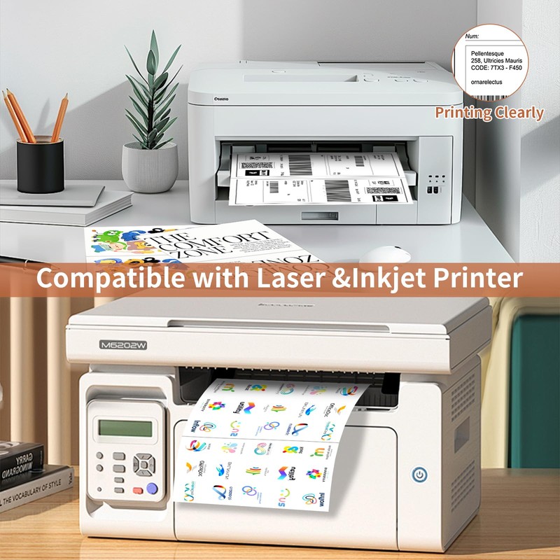 - 【Compatibility】: Labels stickers are compatible with most inkjet printers and laser printers. Standard 8.5" X 11" paper size (US Letter Size) that passes easily and smoothly through your printer, preventing misalignment and paper jams.