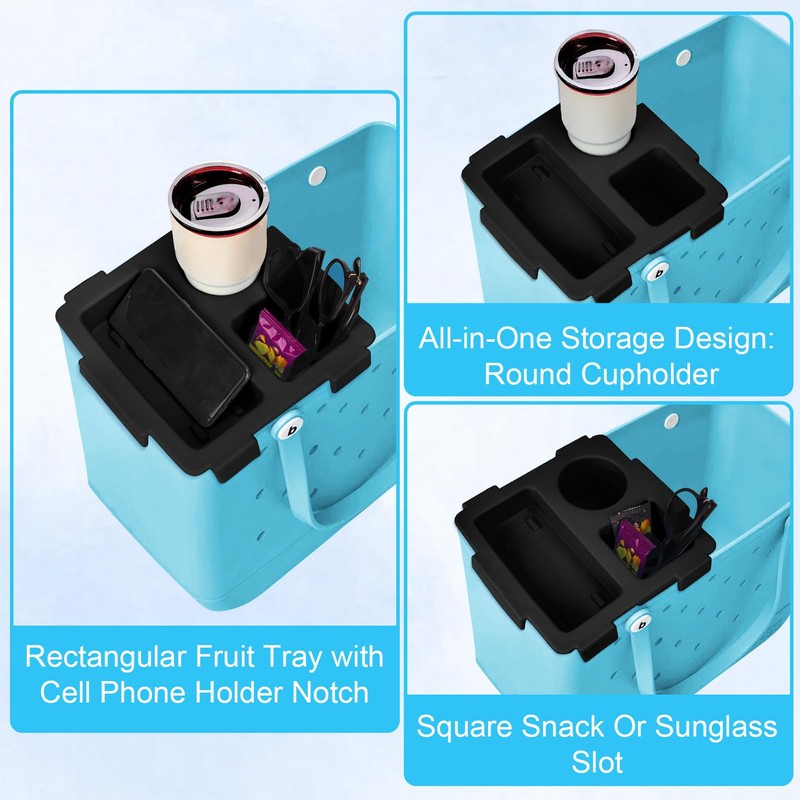 Half Topper Tray Accessories for Bogg Bag,Cup Holder and Snack Solt, Black Organizer and Tray Topper for Bogg Bag (No bag)