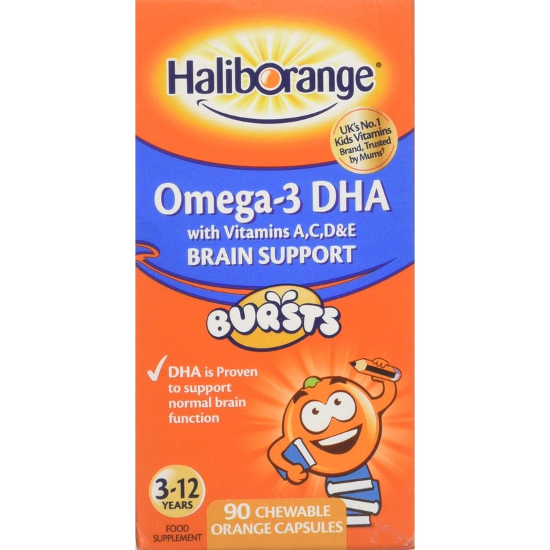 - Omega-3 Fruit Bursts for kids 3-12 years to help support health and wellbeing. The chewy orange fruit bursts taste delicious and provide vitamins A, C, D & E with high levels of essential Omega-3 fatty acids which help support brain function