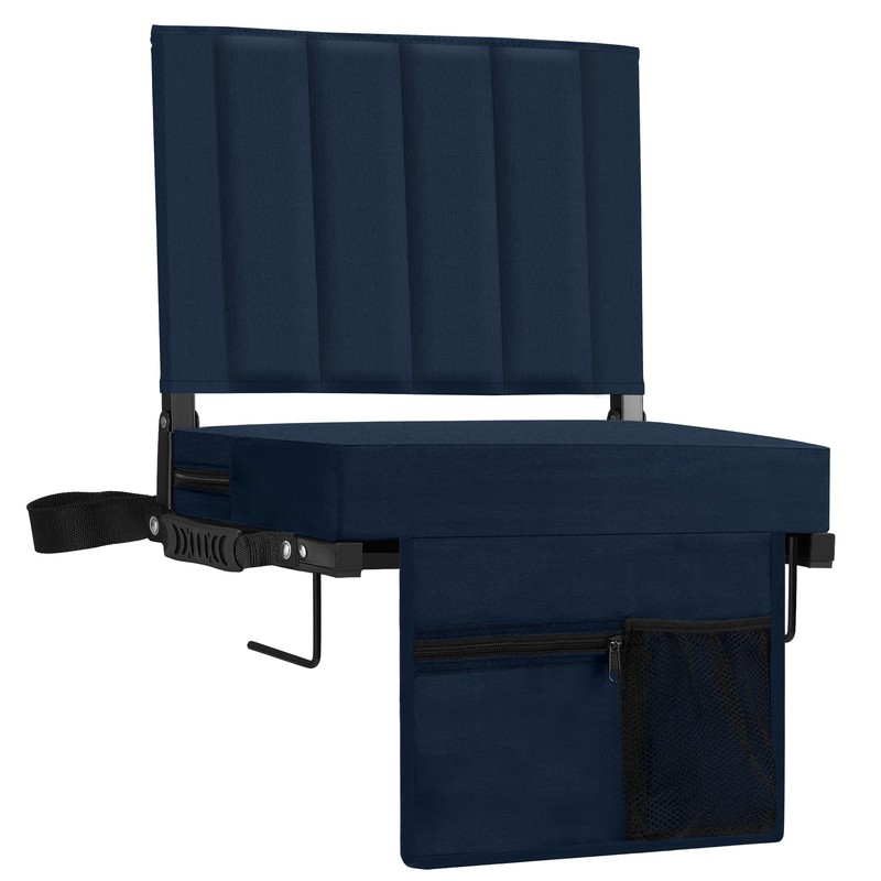 Halituny Stadium Seat for Bleachers with Back Support, Portable Bleacher Seat with Wide Comfy Padded Cushion, Metal Hook, Folding Stadium Chair with Shoulder Strap, Carry Handle, Cup Holder, Navy Blue