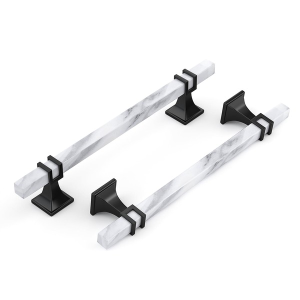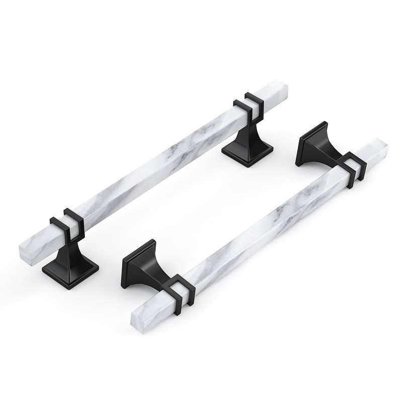 Haliwu 10 Pack 6-1/4 inch White Marble Grain Kitchen Cabinet Pulls Black Dresser Drawer Handles, 2 Tone Square Hardware