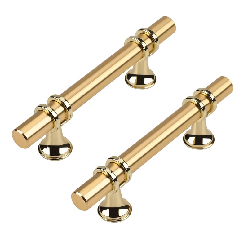 Haliwu 10 Pack Gold Cabinet Handles, Brushed Brass Pulls Kitchen Barrel Champagne Gold Pull Hardware, 3 inch Hole to Hole Center