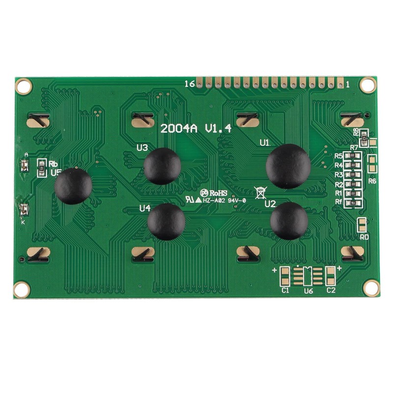 - Bright and high-contrast due to LCD display technology. Display has 4 rows with 20 characters each in white text on a blue backlight.