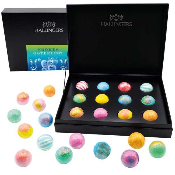Hallingers Frohes Osterfest - Blue - For Easter Basket for Easter, 12 Bath Bombs Gift Set, with 12 Bathbombs Ready as a Gift (Set) - Easter Gifts Easter Basket Easter Eggs & Easter Decoration | Gl