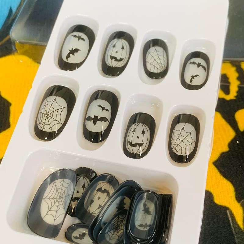 - 【Package】The package contains 24 pieces of false nails of different sizes, 1 mini nail file, 1 small wooden stick, 1 piece of nail glue sticker. Halloween glue on nails are perfect for most people's nails.