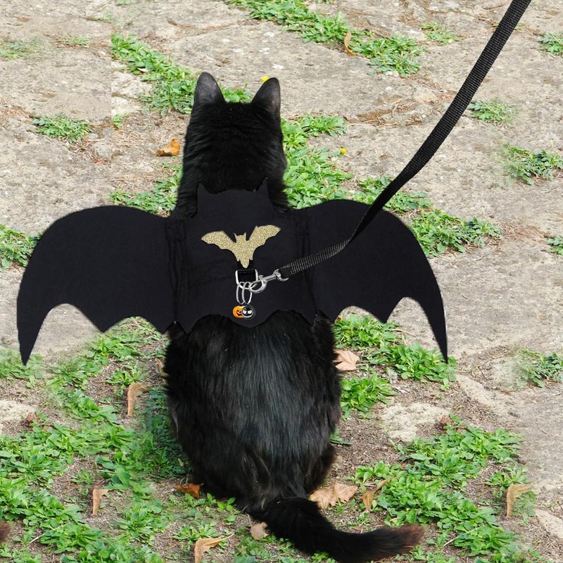 - 🦇Puppy Bat Wings with Pet Lead: This cat Halloween costume for cat with a traction ring and paired traction rope, offer safety and convenience. Don't worry about losing your pet when you go out to play anymore.
