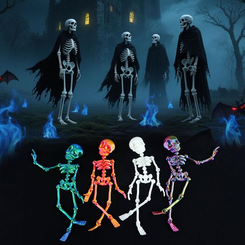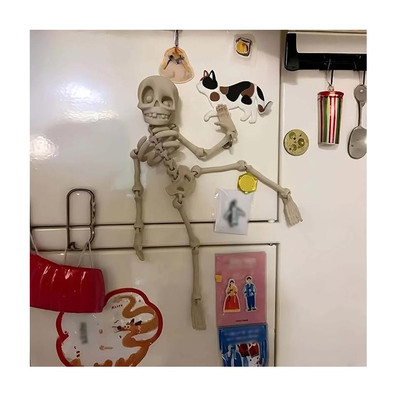 Halloween Funny Poseable Skull Fridge Magnet with Movable Joints for Decorating Fridge Kitchen Office Storage Cabinets:_Luminous Green Cross+Luminous Green Skull
