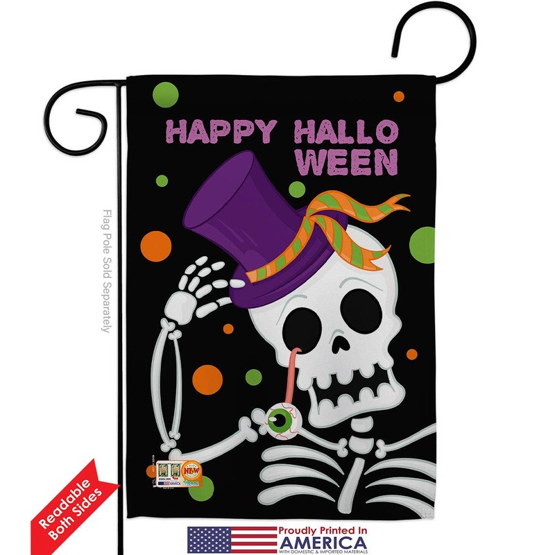 Halloween Happy Garden Flag Set with Stand Fall Witch Trick or Treat Spooky Night Black Cat Season Autumntime Pumpkin Small Decorative Gift Yard House Banner Double-Sided Made In USA 13 X 18.5