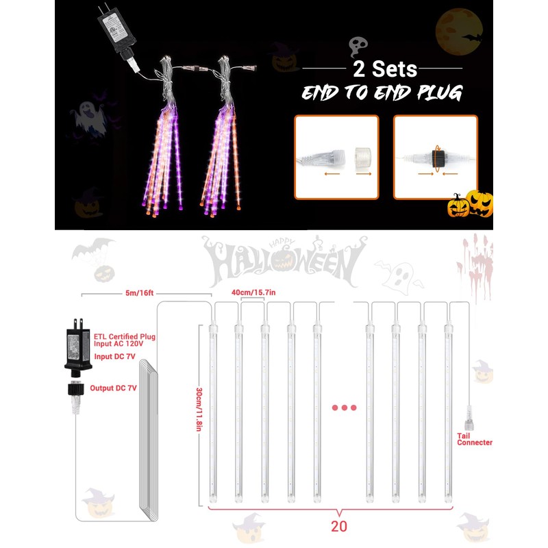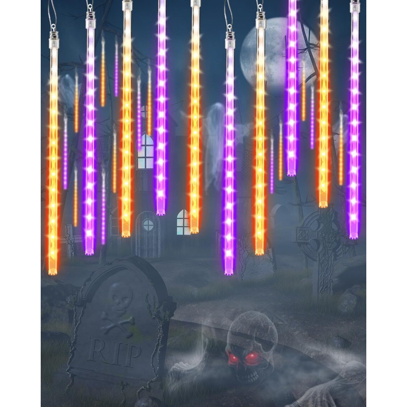 Halloween Lights Outdoor 20 Tubes 480 LED Raindrop Lights Meteor Shower Icicle Lights with Timer Function Cascading Lights Falling Rain Lights for Halloween Orange Purple