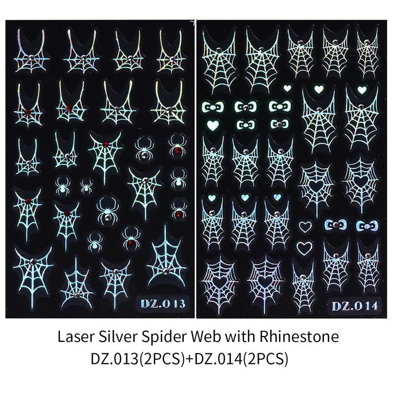 - Easy to Use: 3D spider web spider design with rhinestone Halloween nail stickers, just peel it from the paper and stick it on your nails. Easy to use, Ideal for natural or acrylic nails.