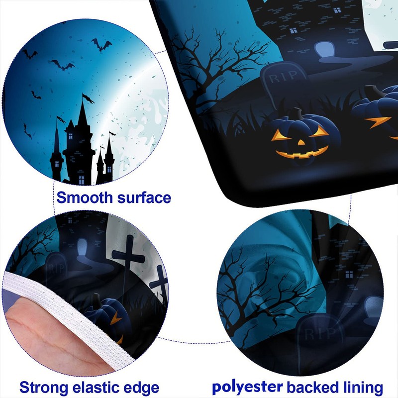 Halloween Elastic Picnic Table Cover Waterproof for Table + Bench Fitted Polyester Backing for Outdoor/Picnic/Travel/Holiday/Party/Folding Table, tablecloths are spill and stain resistant.