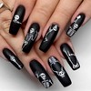 - Nice Halloween Gift: These cool false nails can bless your beauty in dating, birthday, prom, party, dances, etc. Black press on nails are the perfect gift for women and girls. You can give it to your mother, girlfriend or sister in the Halloween.