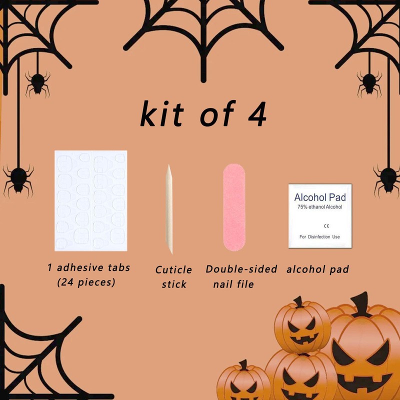 - Package Include:You will receive 24 halloween press on nails in 12 different sizes, 24pcs jelly stickers, 1pcs nail file, 1pcs wooden stick,1pcs alcohol pad.