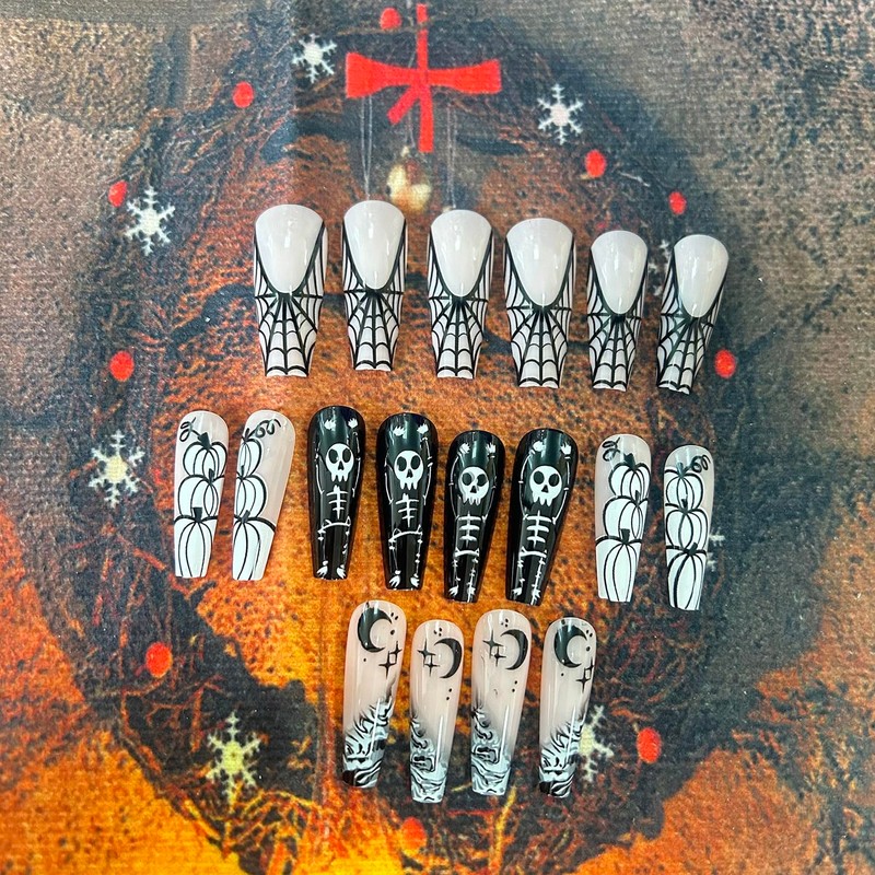 - 【Wide Applications】Day of the Dead Press on fingernails very suitable for party, prom, dating,Halloween occasions etc also great for nails salon, DIY home nails art. Perfect for easy and quick nail art(if you don't have time to design your own). Halloween Artificial finger nails are a great holiday gift for your family or friends.