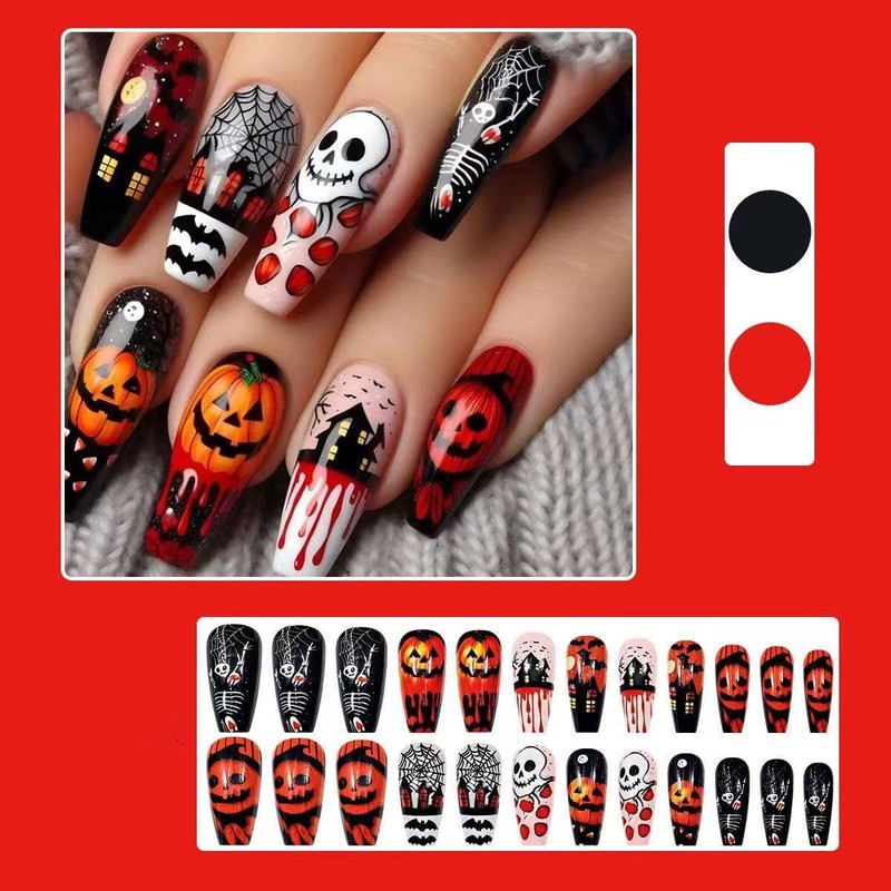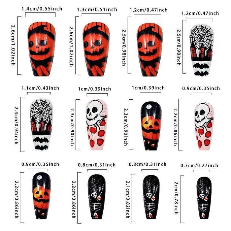 - Package Include: You will get 24 pcs Halloween long press on nails, 24pcs jelly glue stickers and a wooden stick and a nail file,no need to buy other things, you can get the nail salon-like effect