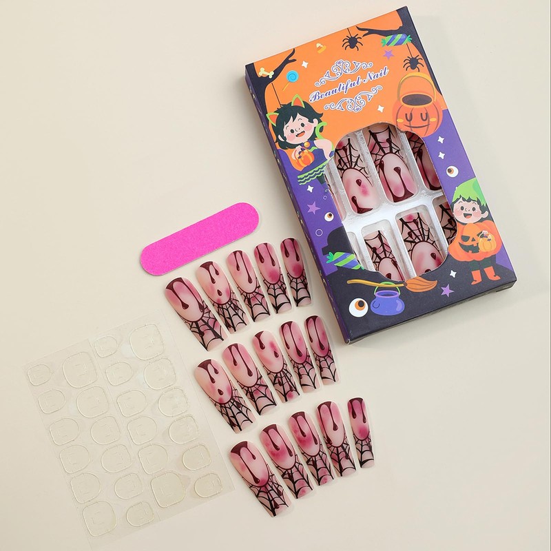 - Halloween Nail Set: You will get 24 Halloween press on nails with designs, complete with a mini file, wooden pusher, and jelly glue stickers. This set provides the essentials for creating polished, Halloween-ready nails at home