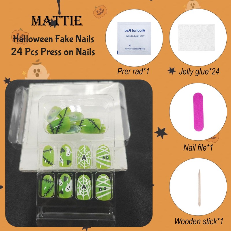 - Easy to Use: After trimming and cleaning your natural nails, choose the right size, stick on nails the jelly glue we provide on your nails,the press on nails for 10 seconds. you can have cute halloween nails in just a few simple steps.