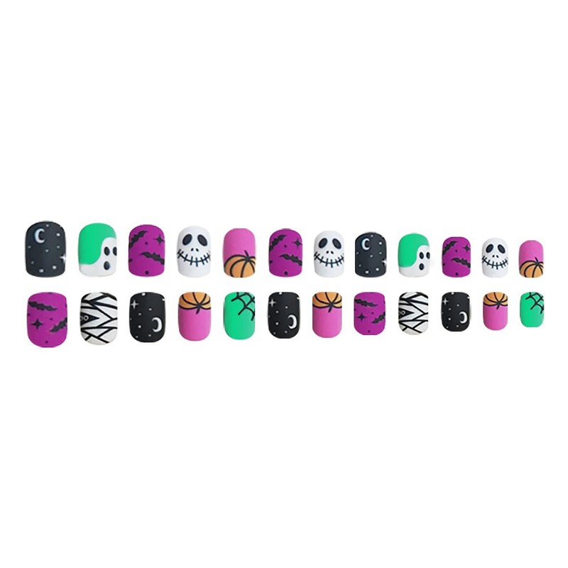 - 【Package Includes】 24 pieces Halloween fake nails, 1 sheet of 24 pieces jelly glue, 1 piece of mini nail file, 1 piece of wooden stick and 1 piece alcohol pads. Crafted from durable acrylic, enjoy long-lasting use without worrying about chipping or fading.