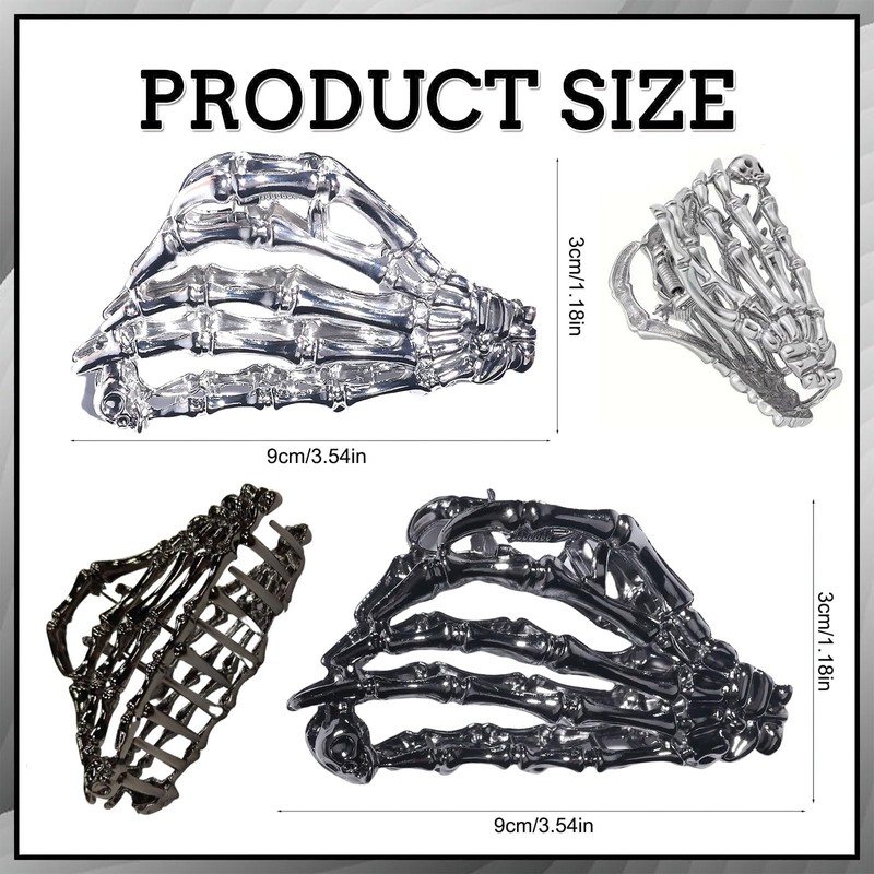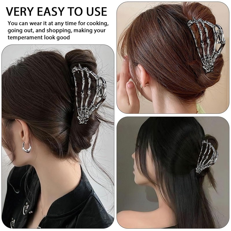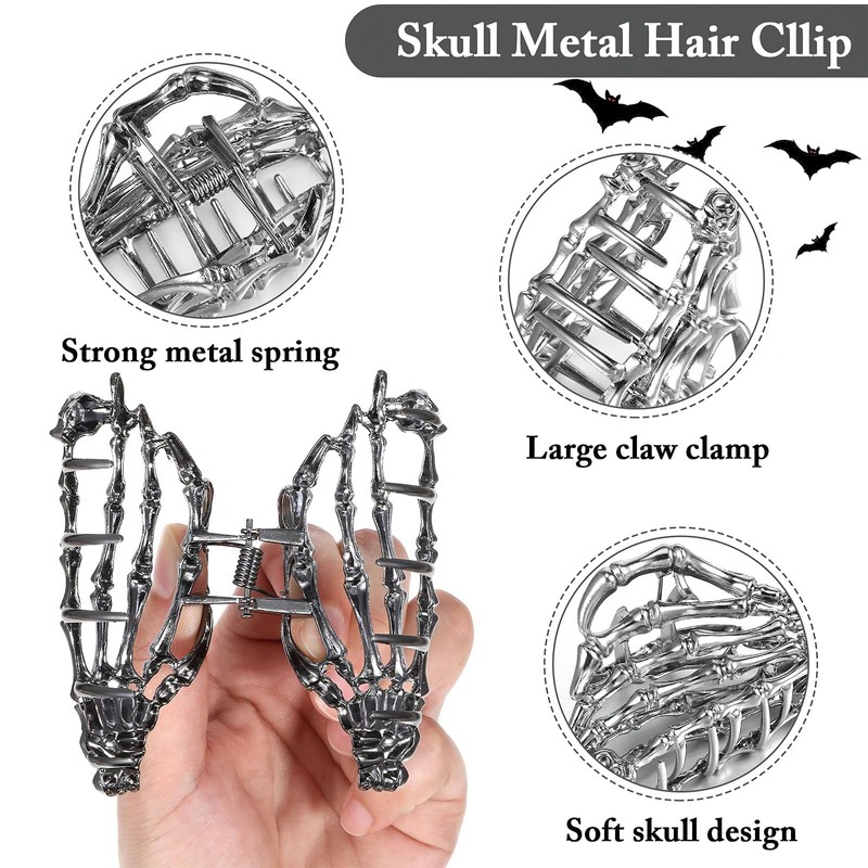 - Unique Design: The Black and Sliver Metal Skull Hand Hair Clip, a hair accessory that stands out with its distinctive bone hand design, adding a touch of unconventional personality to your hairstyle