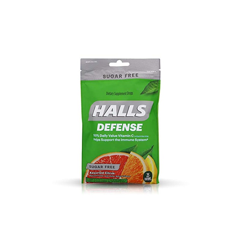 Halls Defense Vitamin C Drops Sugar Free Assorted Citrus - 25 ct, Pack of 4