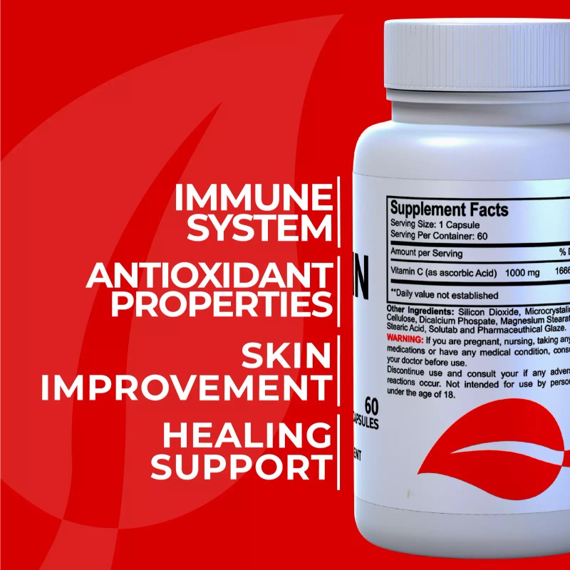 HALLUSA NATURAL VITAMIN C 1000mg - Powerful Antioxidant - Immune System - Supplement - 60 Cap