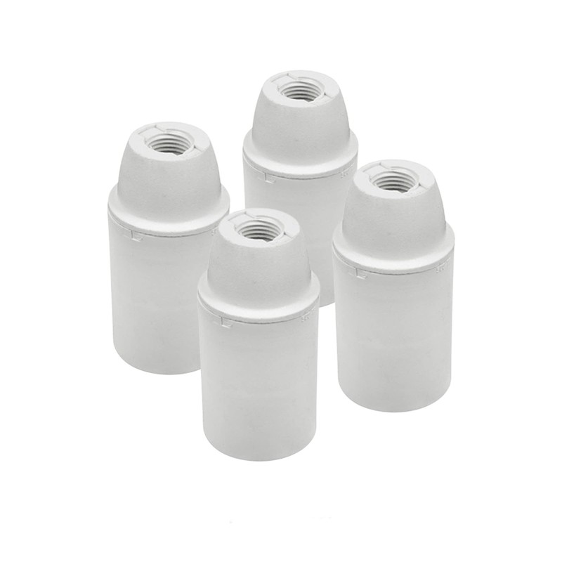 Discover our 4-pack certified E14 lamp holders from Italy, which not only offers the highest quality but also attractive design. Each white E14 lamp holder consists of three parts: a base with M10 x 1 thread for a fixed mounting, a connection clamp with screws for easy cable connection and a smooth E14 lamp holder that elegantly completes the overall design.