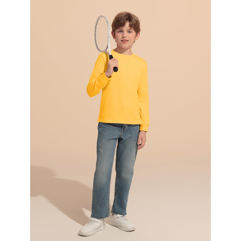 Haloumoning Kids Boys T Shirts Casual Long Sleeve Crewneck Loose Fit Fall Basic Tees 5-14 Years Yellow