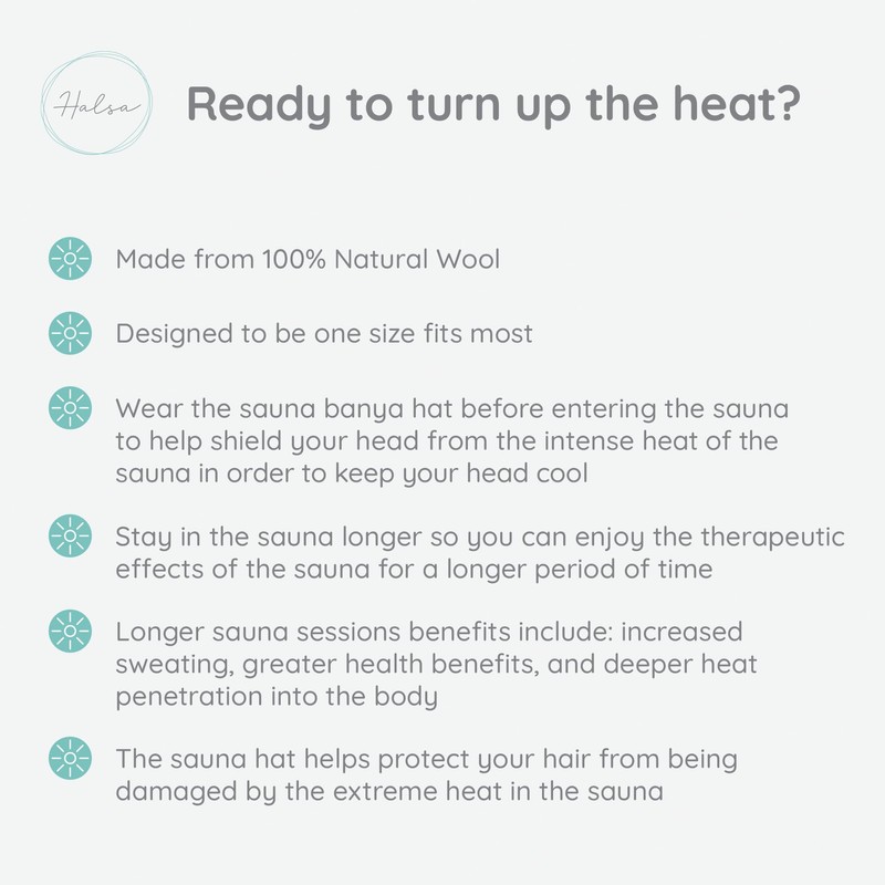 Halsa Sauna Hat, Natural Wool Sauna Cap for Men and Women, Eco-Friendly Insulating Headgear for Spa, Steam Room, Banya, Bathhouse, Comfortable, Breathable, Handmade, One Size Fits All