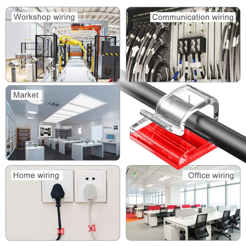 - 【Self-Adhesive Clips】Our cable holder clip comes with a strong adhesive pad that adheres to any flat and dry surfaces such as glass, metal or wood desks, tables and walls. Easy to remove without any residues and damage.