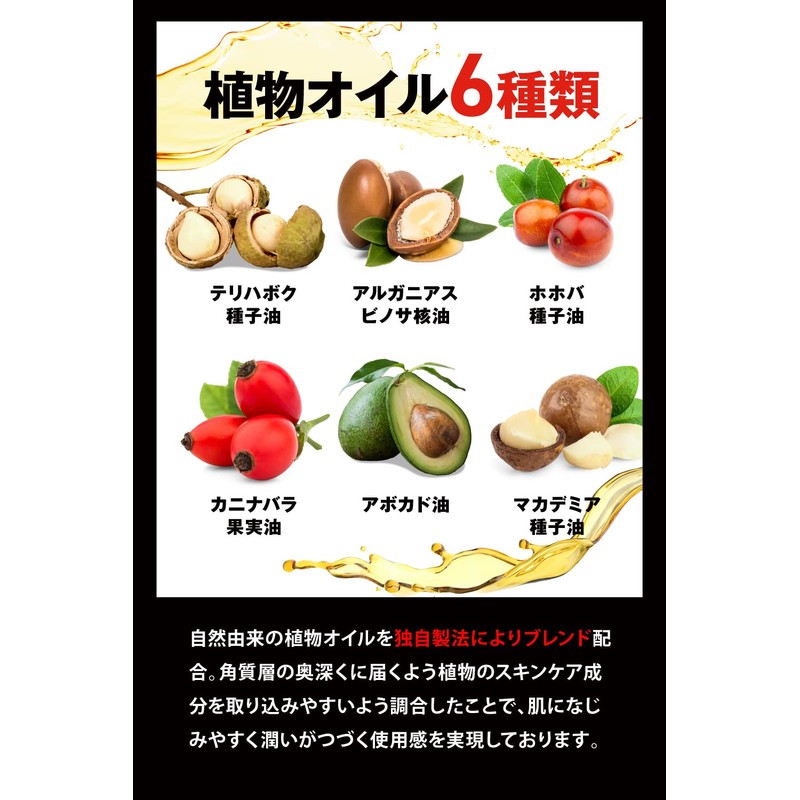 - (Vegetable Oil) Formulated with 6 types of plant oils, including terihabo oil, argan oil, jojojoba oil, caninabara oil, macademia oil, and avocado oil. A drop of life for the soil plants that grow up in the sun, and are filled with seeds and fruits to leave the descendant. Add vegetable oil to restore skin texture and soften dry and hardened skin. Experience the blessings of nature with your skin