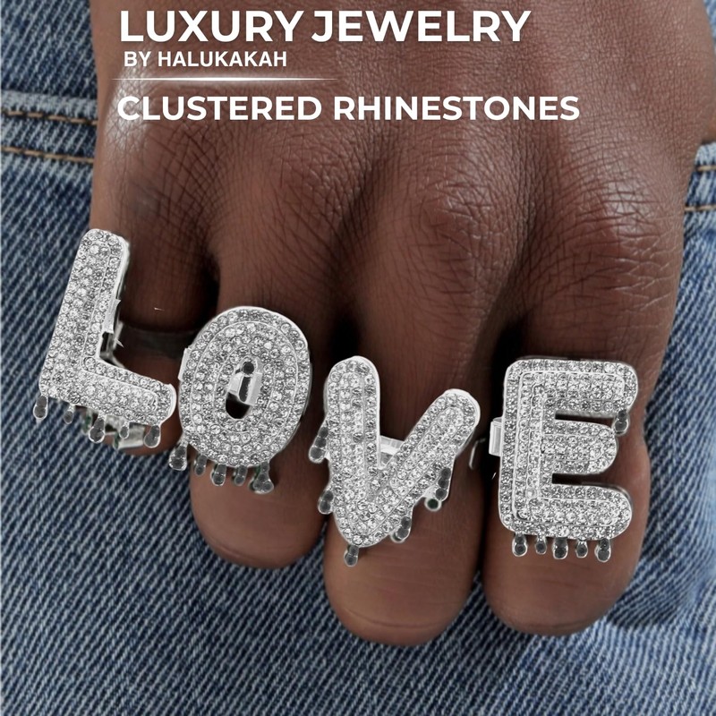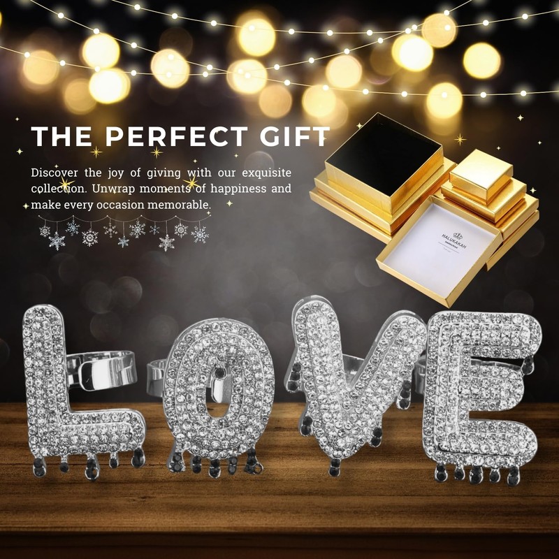 - ✨ Fascinating grouped rhinestones in King/Love waterfall design: The KING/LOVE letter ring in this set presents a captivating arrangement of over 100 grouped rhinestones, arranged in an enchanting waterfall design. The delicate detail work and meticulous craftsmanship add a touch of elegance and romantic charm.