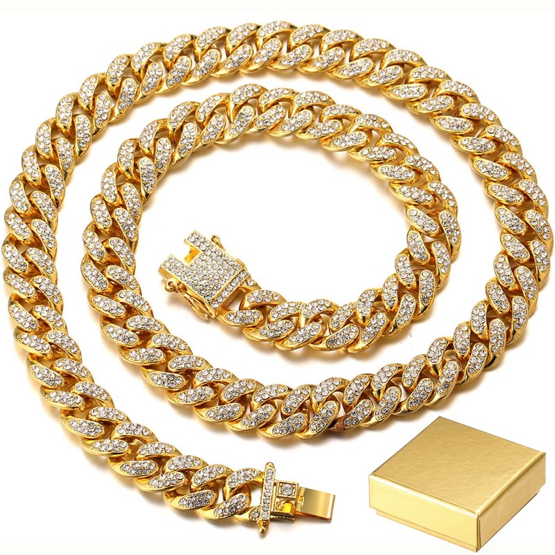 - √ 3 STANDARDS FOR A GOOD GOLD CHAIN - Thick Gold(4 Times+ Real Gold Plated),Pro Handset Diamonds (Handcrafted by 15 years+ experience artisans instead of machine glueset),Reasonable Price(Only pay for the product itself).