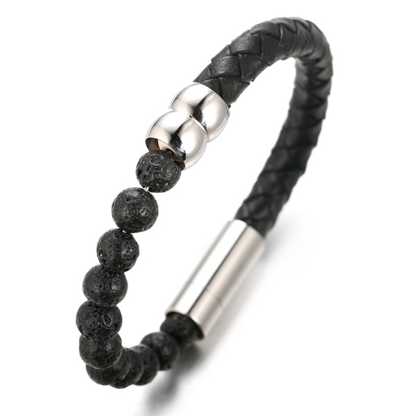 Halukakah "SALUTE THE EARTH" Men's Genuine Leather Bracelet with Lava Rock Beads,Smart Magentic Clasp, 8.46"(21.5cm) with FREE Giftbox