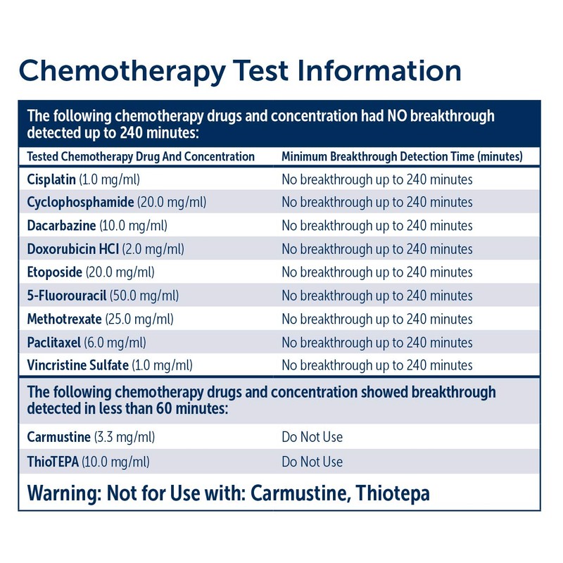 - Gloves have been cleared for use with chemotherapy drugs per ASTM D6985