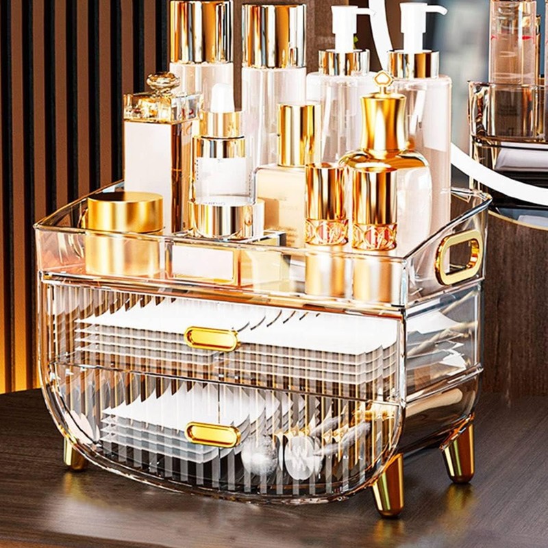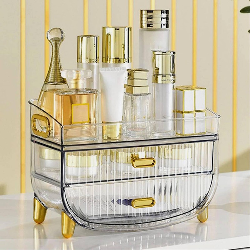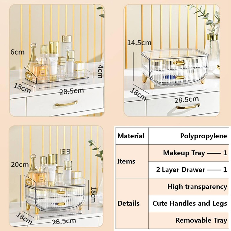 • Acrylic Clear Plastic Drawers Organizer for Makeup Storage with 2 Drawers 1 Tray --Size: D7.28 x H1.77 inch --Package Content: 1 x Serving Storage Display Basket