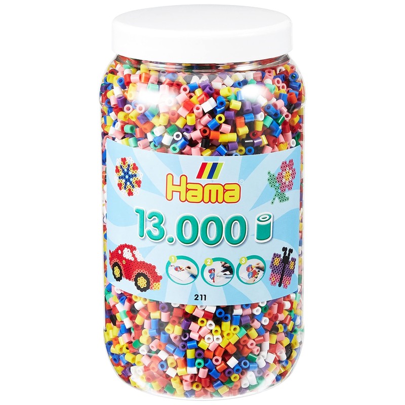 Hama 211 00 – Tub of Iron-on Beads with approximately 13,000 beads, 10 different colours.
