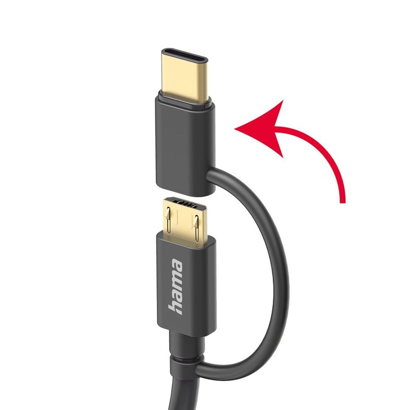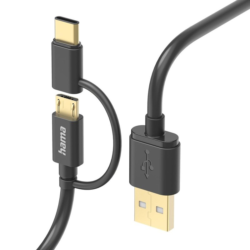 HAMA 2in1 Multi-Ladekabel, USB-A, Micro-USB und USB-C, 1 m, Schwarz
