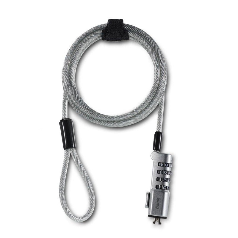Hama Cable Lock for Laptop, PC or Combination Screen (Security Cable for PC, 4 Digit Lock, 1.85m, Steel)