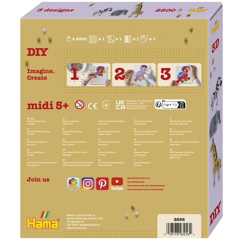 Hama Gift Box - 3D Safari | Approx. 2.500 Fuse Beads, 1 Large Square Pegboard, Printed Design Sheet, Instructions & Ironing Paper | Mosaic Decoration Arts & Craft for Creative Children Ages 5+