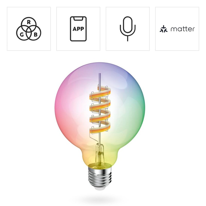 Hama smarte Glhbirne E27 (smarte Lampe RGB und wei?, Filament-Lampe G95 Globeform, dimmbare WLAN Lampe, Matter kompatibel fr z.B Alexa, Google Assistant, Apple Home, Smart Things)