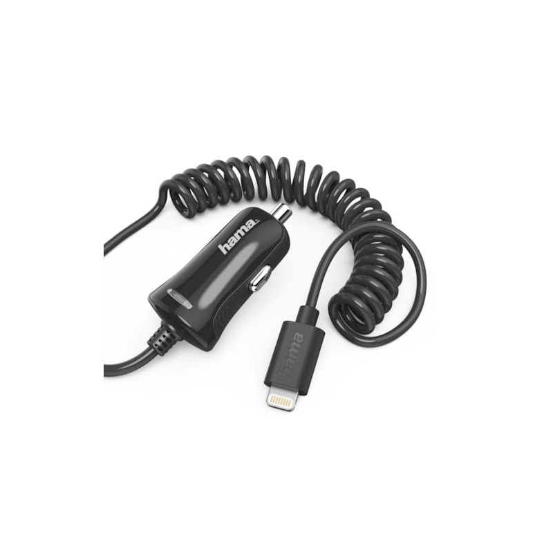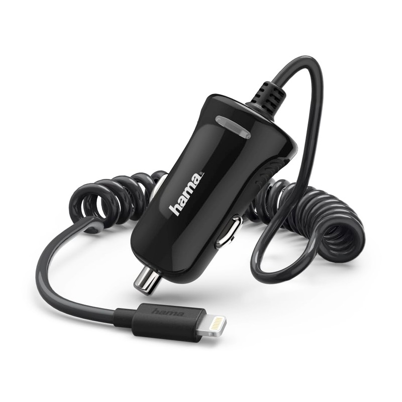 Hama | Lightning 1A Car Charger | Lightning to 12V Aux Socket | 1m | Black