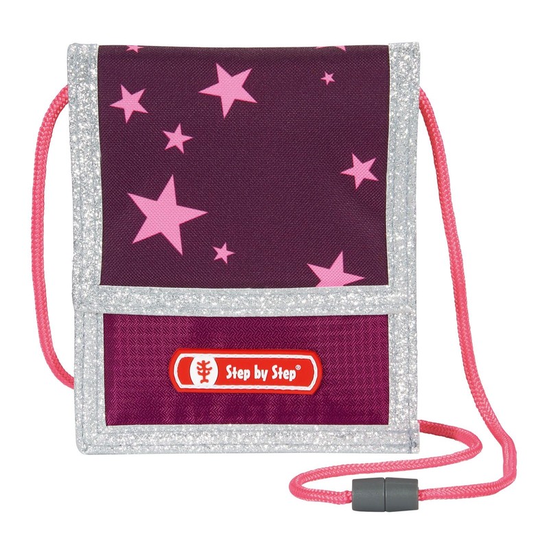 - This step by step item is ideal for your child. It can store money, a key and also the bus ticket. The Step by Step neck pouch is equipped with a safety lock. Dimensions: 11.5 x 13.5 x 1 cm