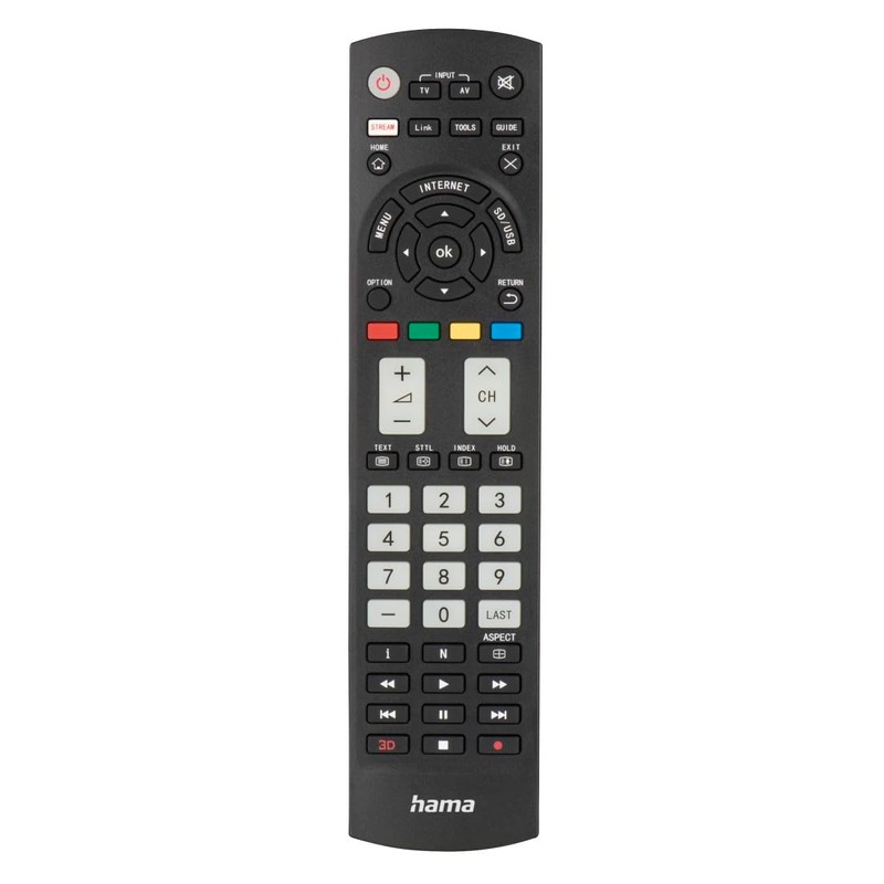 Hama Universal Remote Control for Panasonic TVs (Infrared, Learnable, Luminous Buttons, Smart Button, Easy Mode Function, Ergonomic Main Buttons, 10 m Range) Black