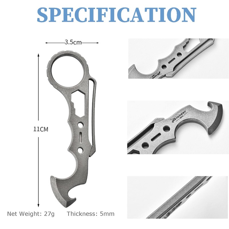 Hamans EDC Pry Bar Multi Tool Titanium EDC Crowbar Prybar Gear with Bottle Opener Wrench Crowbar Screwdriver Clip Function