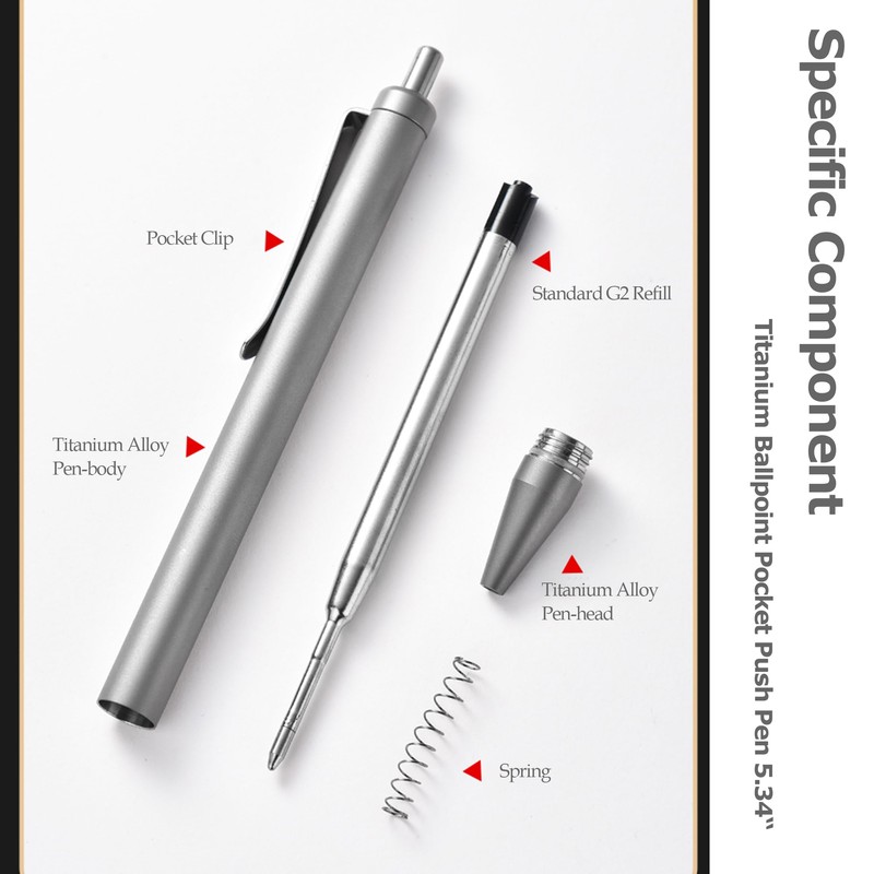 Hamans Titanium Ballpoint Pen 5.33“ Push Pen Clip to Retract Refill Pocket Pen for Everyday Carry Compact Size