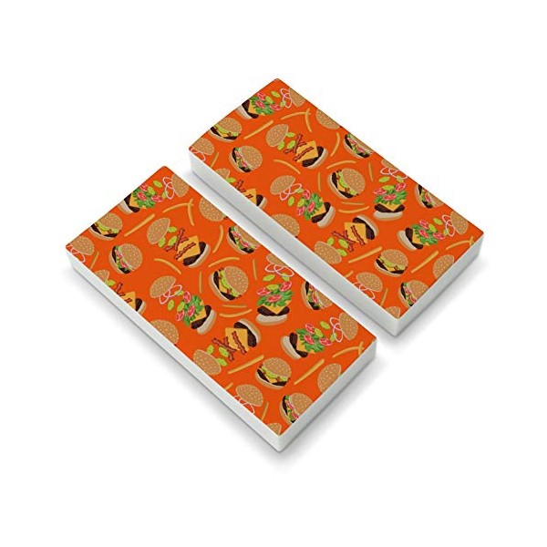 Hamburger Cheeseburger Pattern with Fries and Bacon Eraser Set of 2