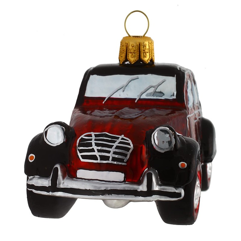 The Citroën 2CV (French Deux chevaux two horsepowers), commonly called duck in Germany and Austria and Döschwo in Switzerland, is a popular model as a Christmas tree bauble without an air-cooled two-cylinder four-stroke boxer engine with front-wheel drive. Between summer 1949 and mid-1990, 3,868,631 four-door sedans and 1,246,335 vans (box duck) were manufactured by the car manufacturer Citroën. We are slowly working on these production figures. Initially smiled by the specialist press, the 2CV became one of the most famous car models in France in the following decades. In Germany and Austria, the model was colloquially called "duck". This designation has been adopted from the Netherlands, where a journalist in 1948 referred to the car as the ugly duckling at first sight. Very late the expression of Citroën was picked up in Germany itself. The four-door glass structure of the Christmas tree figure as 2CV is self-supporting construction and firmly connected to the chassis, most attachments as well. For the 2CV as Christmas tree decoration, no exhaust gas aftertreatment of an unregulated catalyst is offered, so no entry of the key number 77 in the registration certificate for the issuance of a green fine dust badge is achieved. The ugly duckling as a Christmas tree decoration does not receive a green fine dust plaque, which is not required on the Christmas tree.