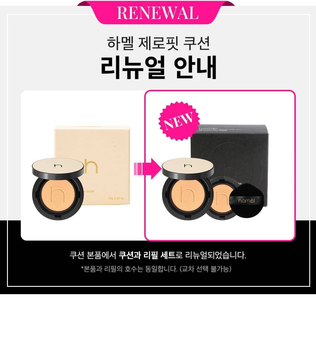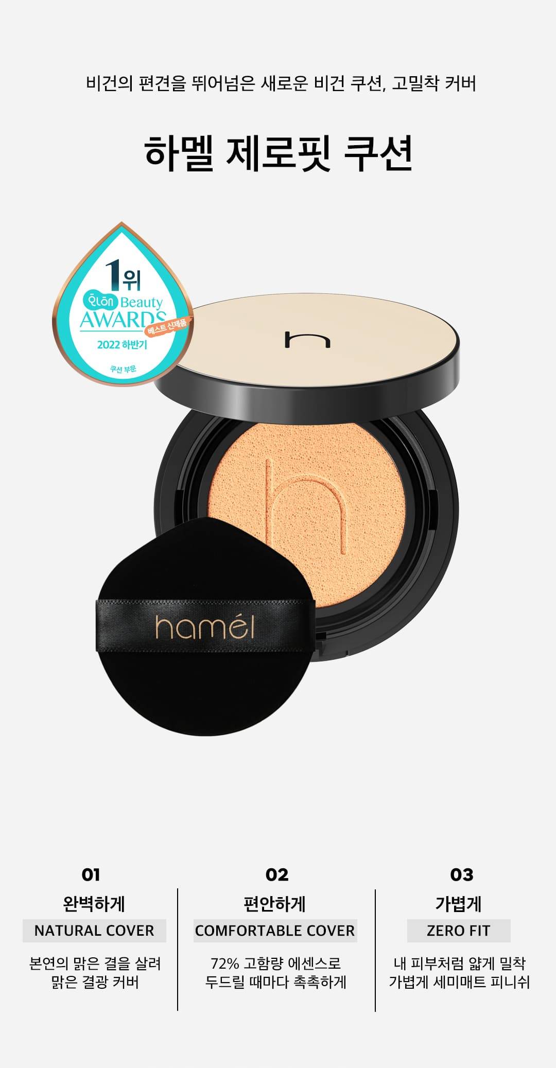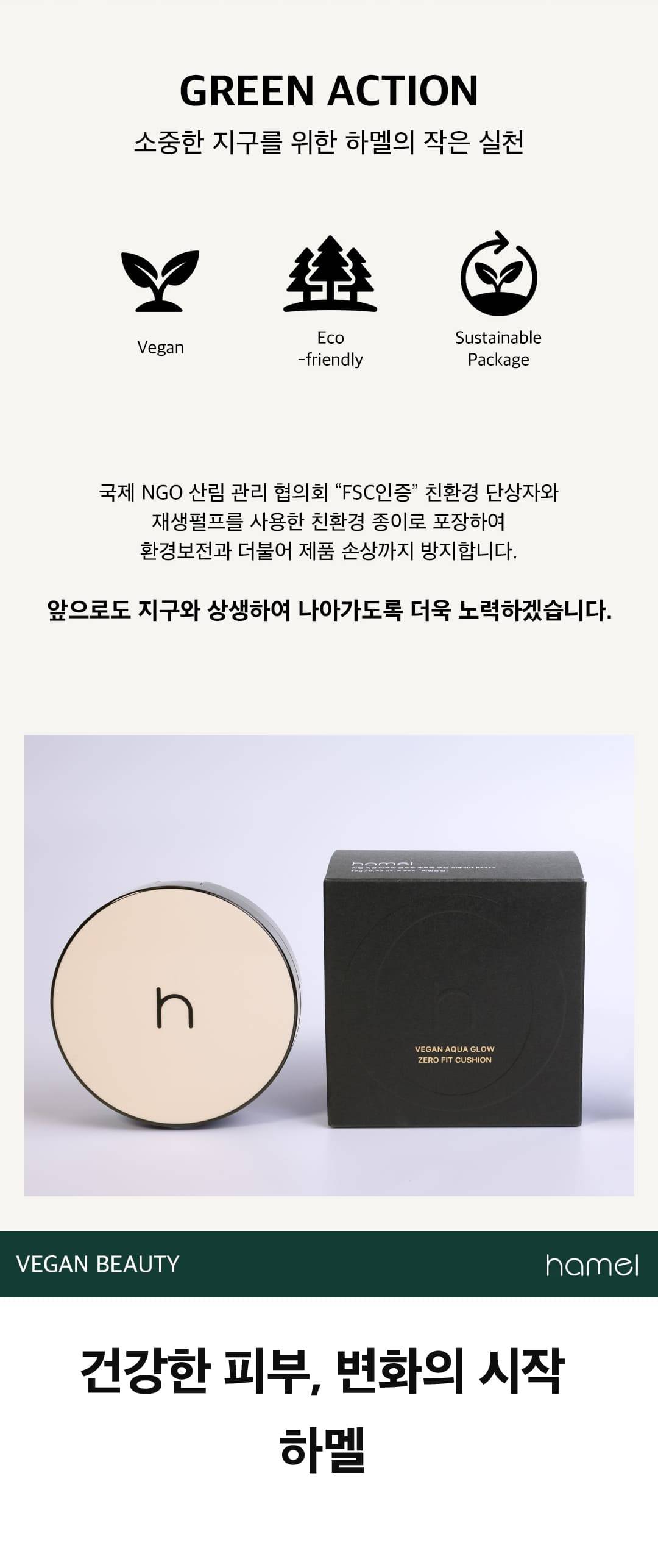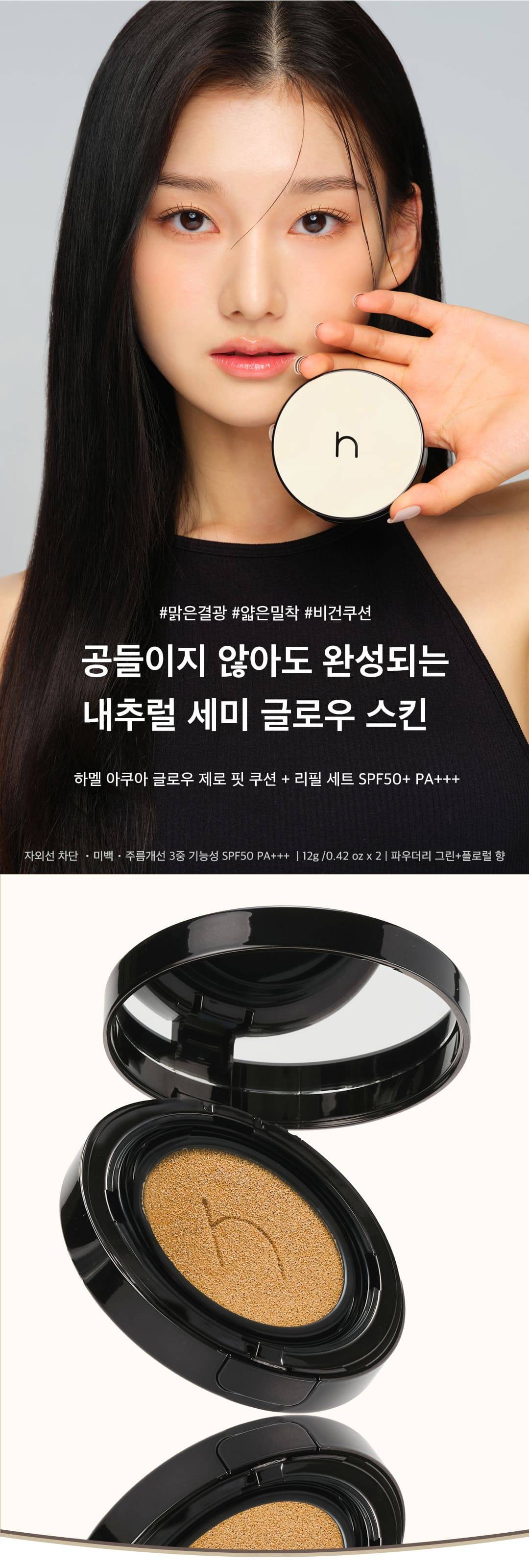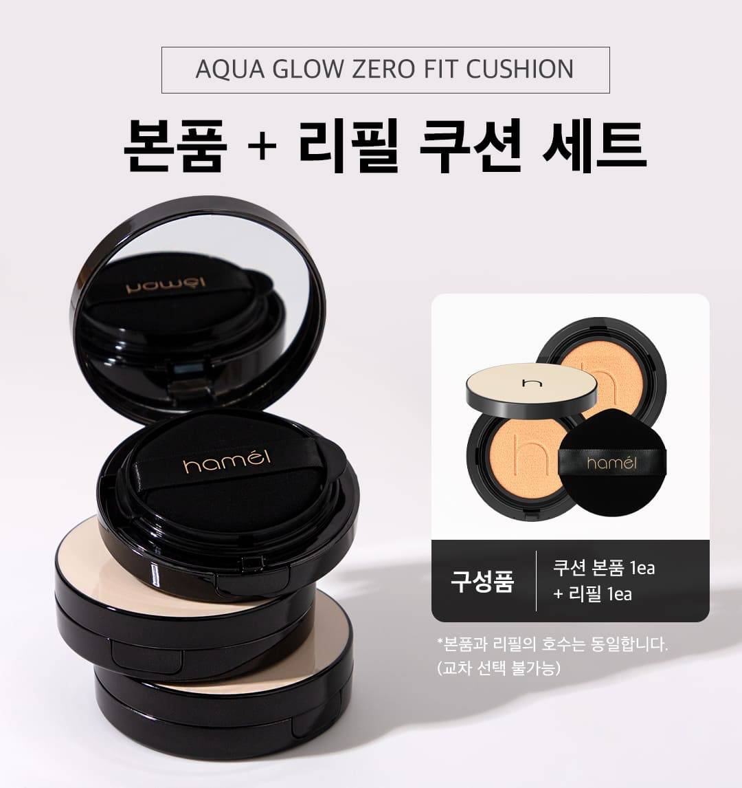 Hamel 비건 아쿠아 글로우 제로핏 쿠션 (본품+리필) Vegan Aqua Glow Zero Fit Cushion (Case + Refill)