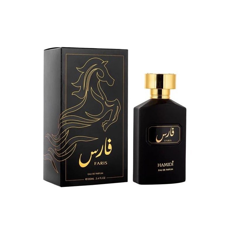 Hamidi Faris Eau de Parfum, Black and Gold Luxury Fragrance, 3.4 fl oz, 100ml
